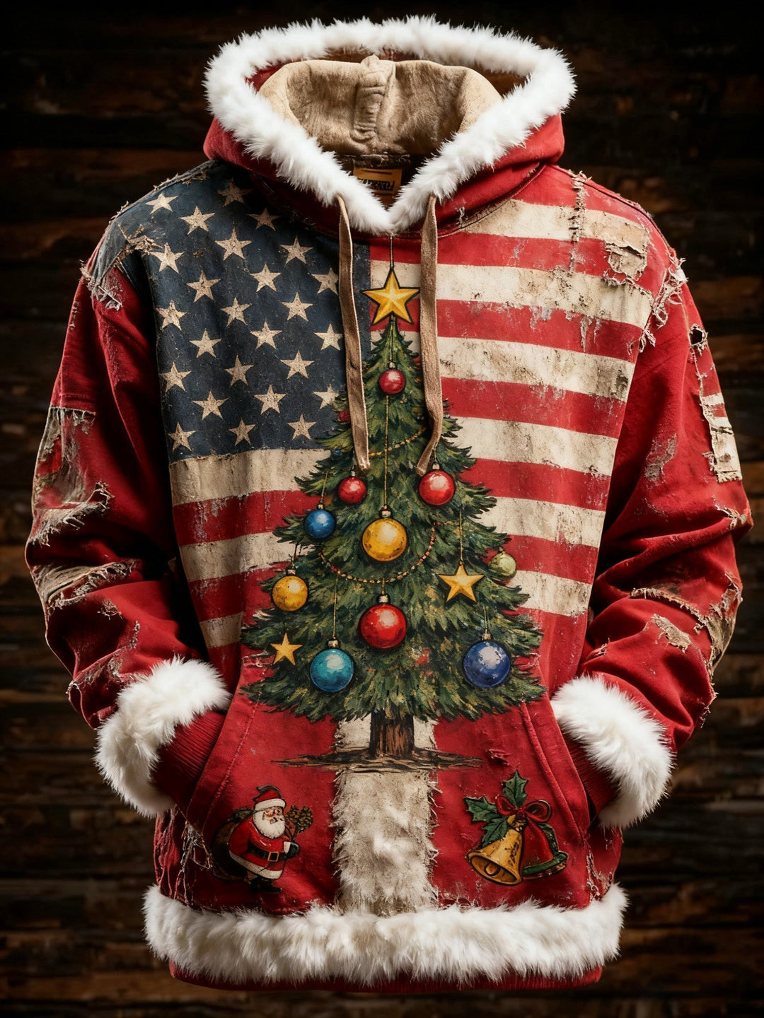Herren Retro Amerikanische Flagge Weihnachtsmann Gedruckter Hoodie